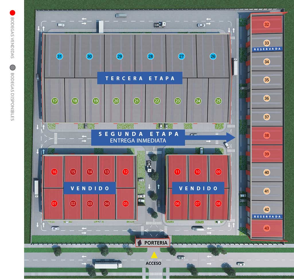 Venta de bodegas y soluciones flexibles para empresas, emprendedores e inversionistas. Centro logístico con conectividad directa a las principales rutas nacionales.